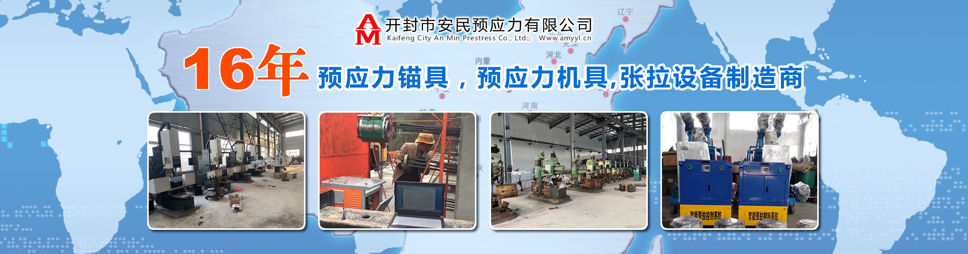 開封市安民預應力有限公司KAIFENG CITY ANMIN PRESTRESSED CO LTD. 開封市安民預應力有限公司是研制、生產(chǎn)、銷售各種預應力產(chǎn)品及預應力施工的專業(yè)廠家。公司主導產(chǎn)品為AM、BM系列錨具,鐓頭錨、弗氏錨、P型錨、精軋螺紋鋼錨具及配套各系列干 斤頂、高壓油泵、灰漿泵、攪拌機、制管機.智能張拉.智能壓漿等機具產(chǎn)品。公司產(chǎn)品已達到GB/14370-2007標準及國際預應力混凝土協(xié)會《FIP1993》標準。 公司設備**,技術力量雄厚。原材料從采購、生產(chǎn)、檢驗和服務的全過程中,均在國際標準質(zhì)量體...